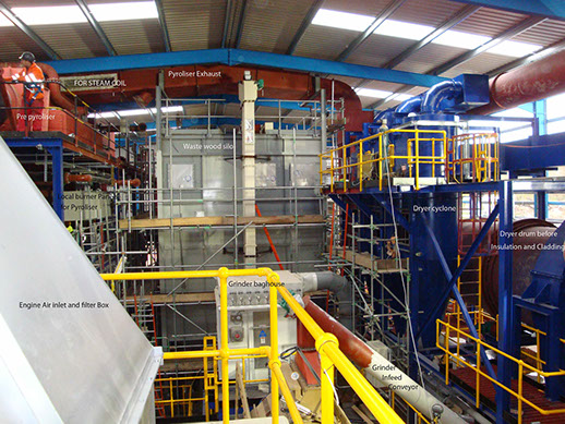 Pyroliser: The key component in the W2E plant. It converts cellulose fibre or biomass to syngas by application of heat in an oxygen starved environment;