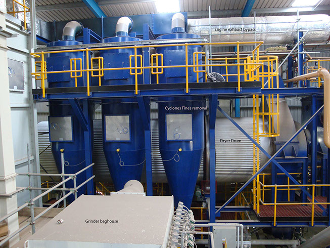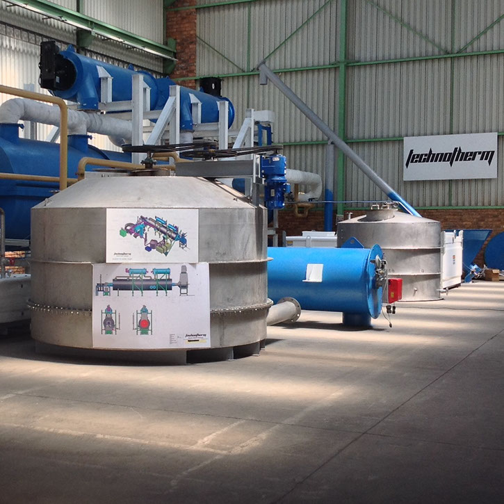 Dryers: Used to remove moisture in order to increase the efficiency of the Pyrolisers. Dryers use engine exhaust for increased efficiency;